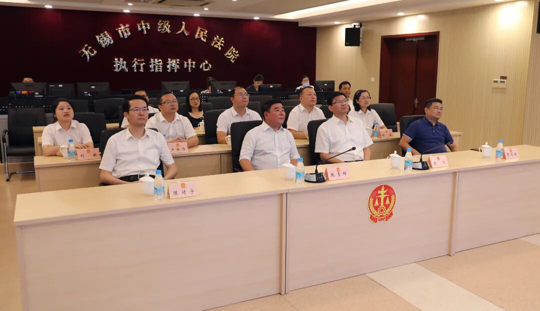 考察组一行还参观了执行指挥中心,听取了“物联网+执行”及执行信息化工作情况。